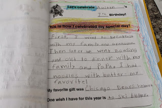 He summed up his birthday by writing in his class's birthday journal.